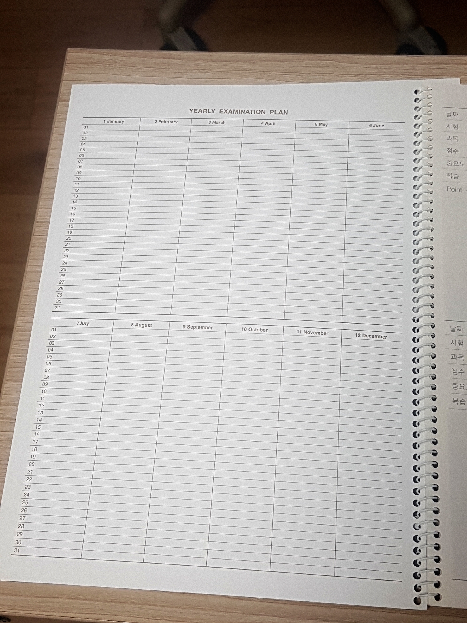 다른 노트들과는 달리, 표지 뒷면에 연간계획표가 있다.