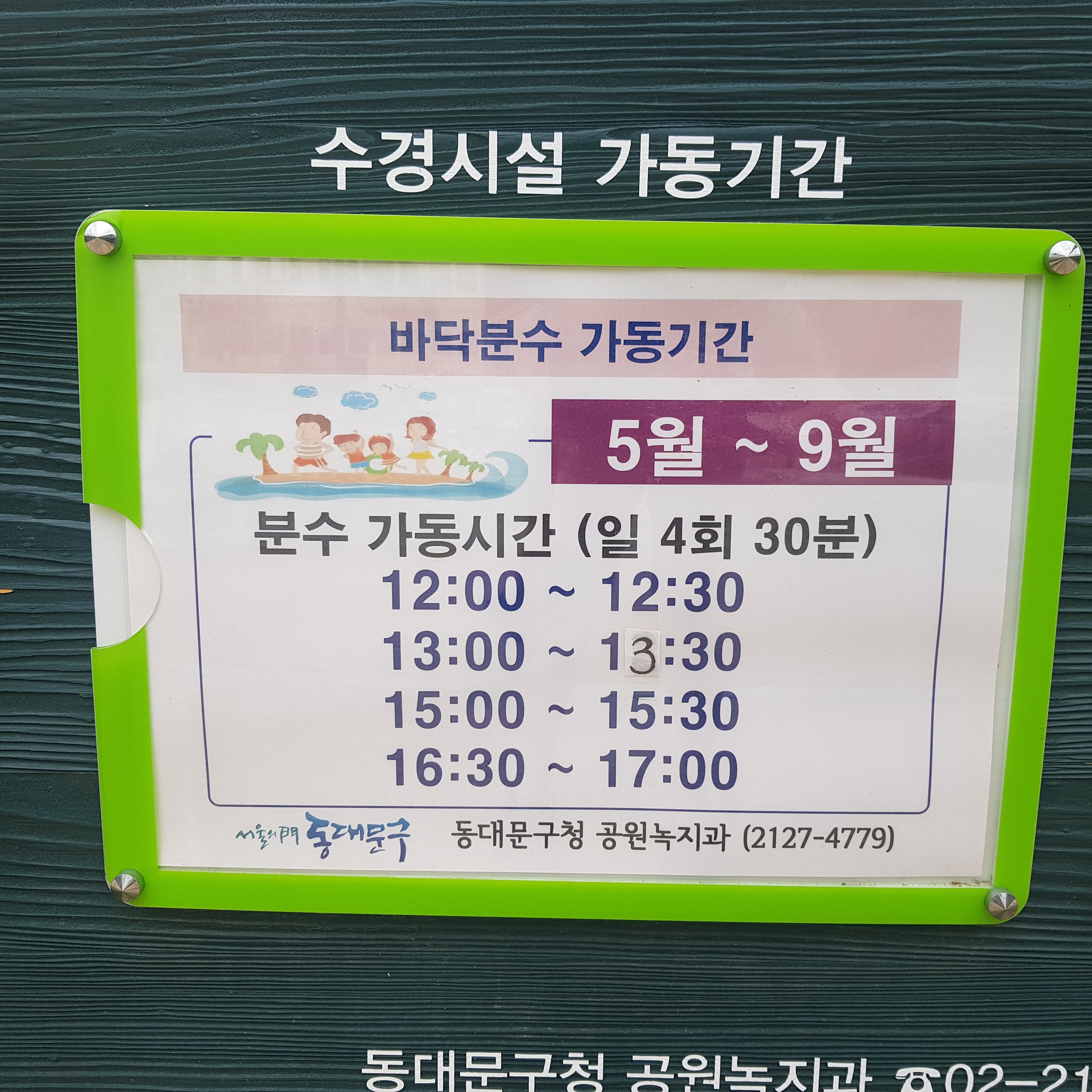 여름에 바닥분수 가동시간 물어볼 때마다 검색해서 찾아보느라 매번 진땀이라