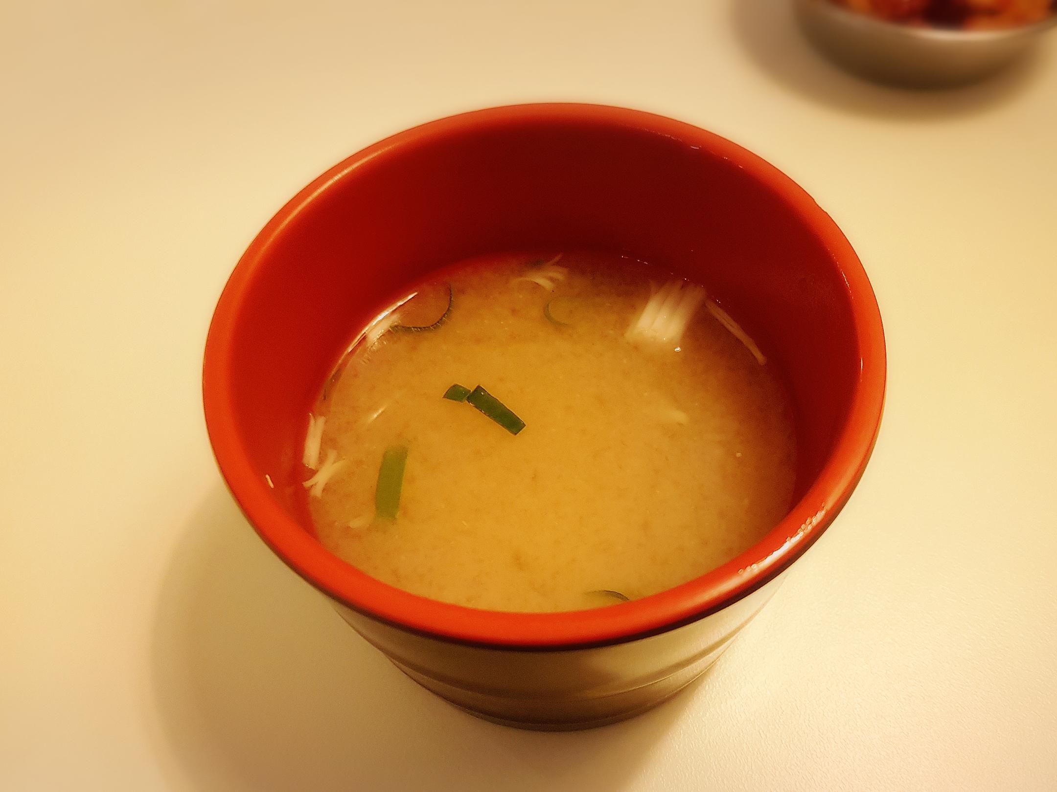 메뉴를 정하면 물과 미소국이 나오는데, 미소국이 정말 진하고 고소하고 맛있다~