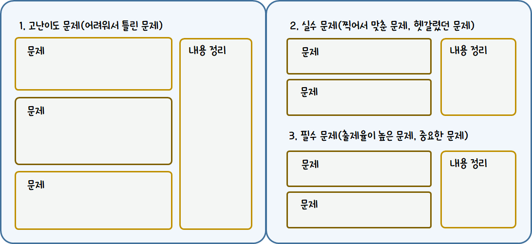 ◎ 수학 고득점: 확실한 개념정리와 복습, 기본서 최소 3번 이상, 오답노트 정리, 취약부분 반복