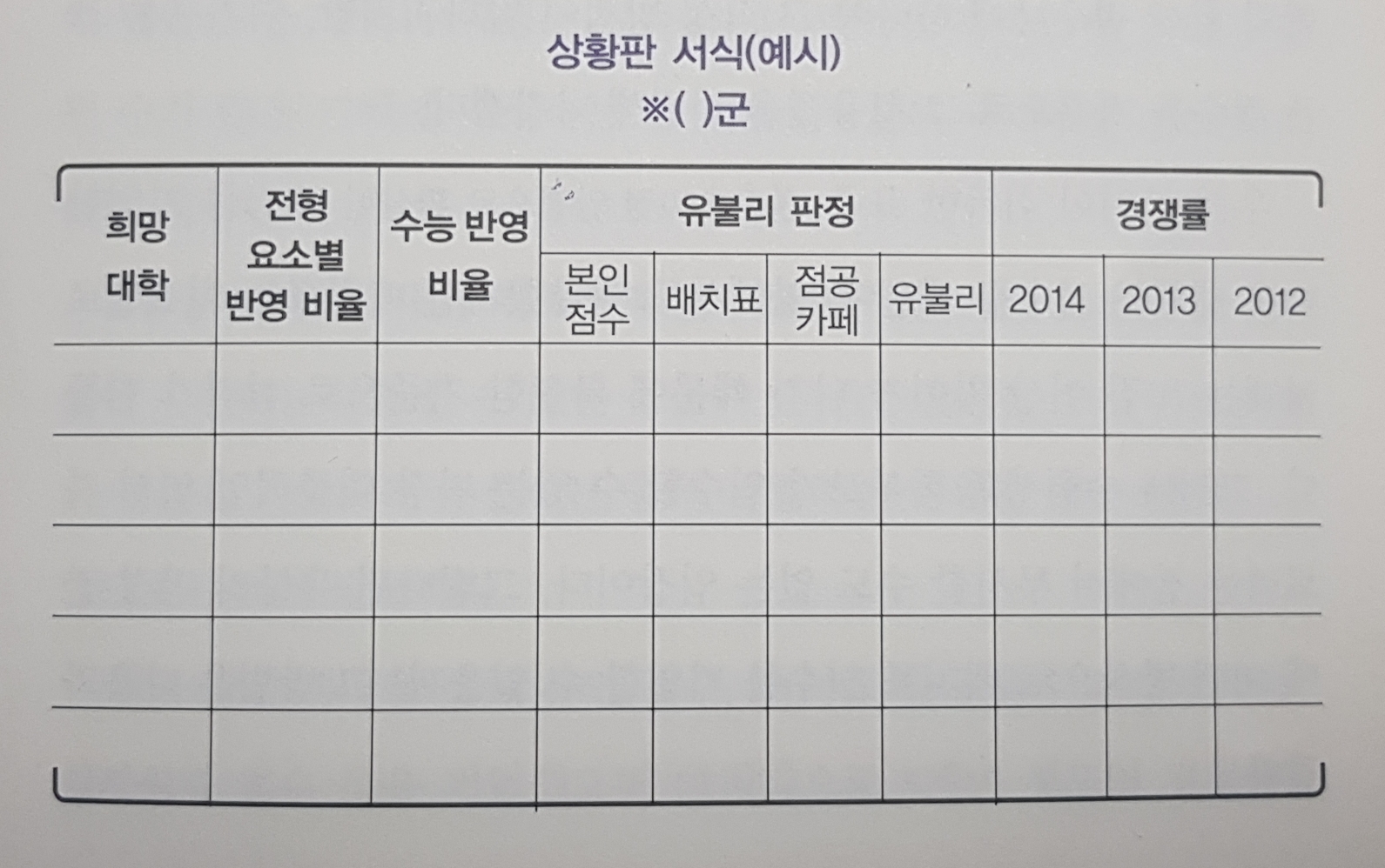 본인의 지원 원칙에 따라 각 모집군당 5개 학교 정도로 희망 대학을 압축, 최근 2!3년간의 경쟁률 파악