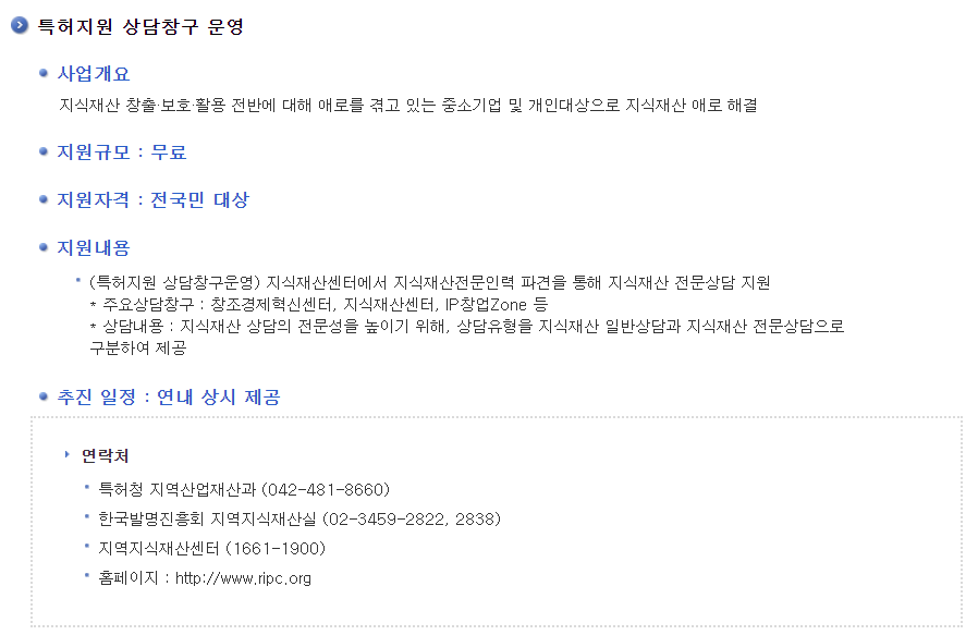 특허청 특허지원 상담창구: 특허 출원과 등록에 필요한 모든 지원을 무료로 받을 수 있음
