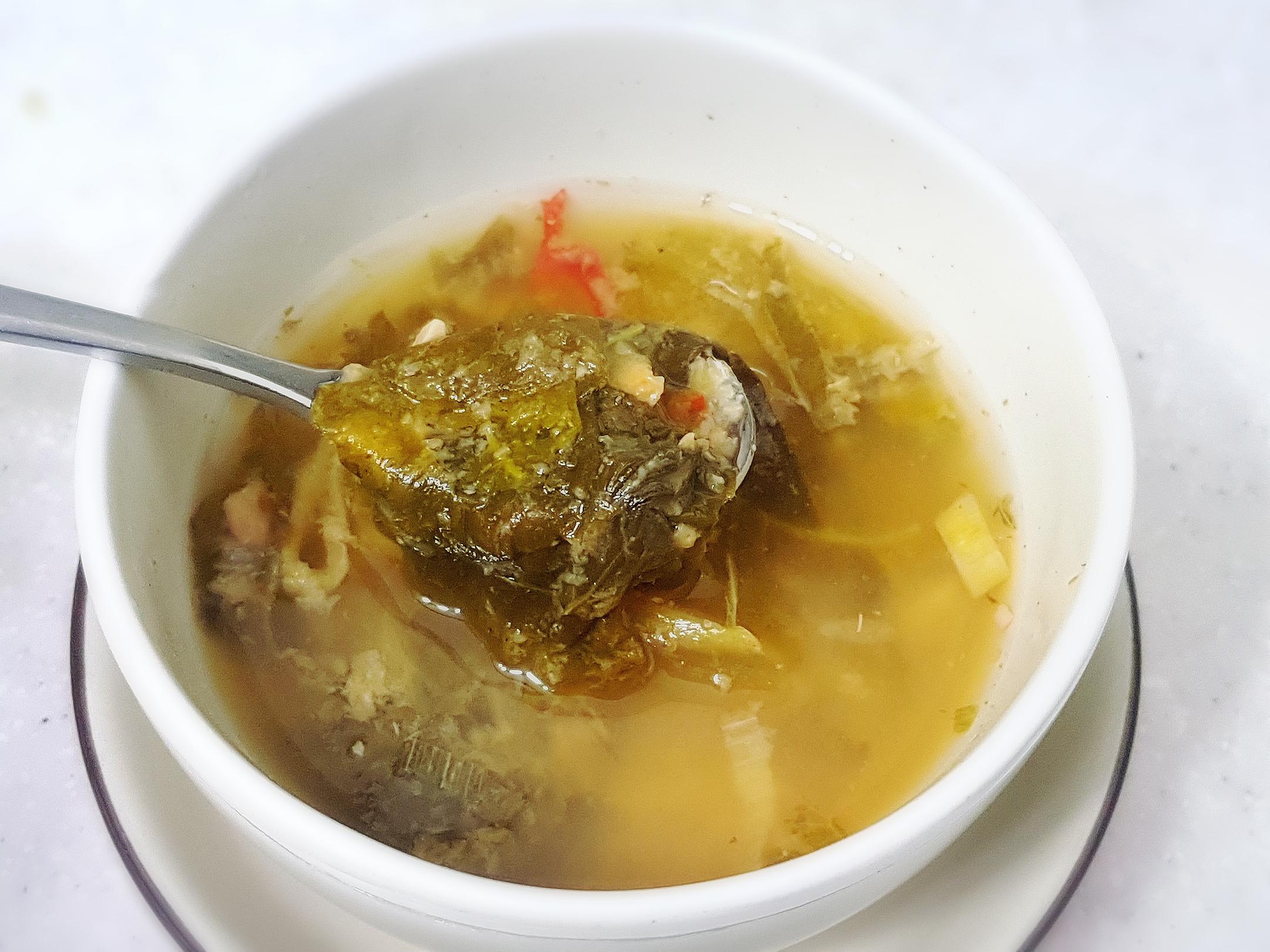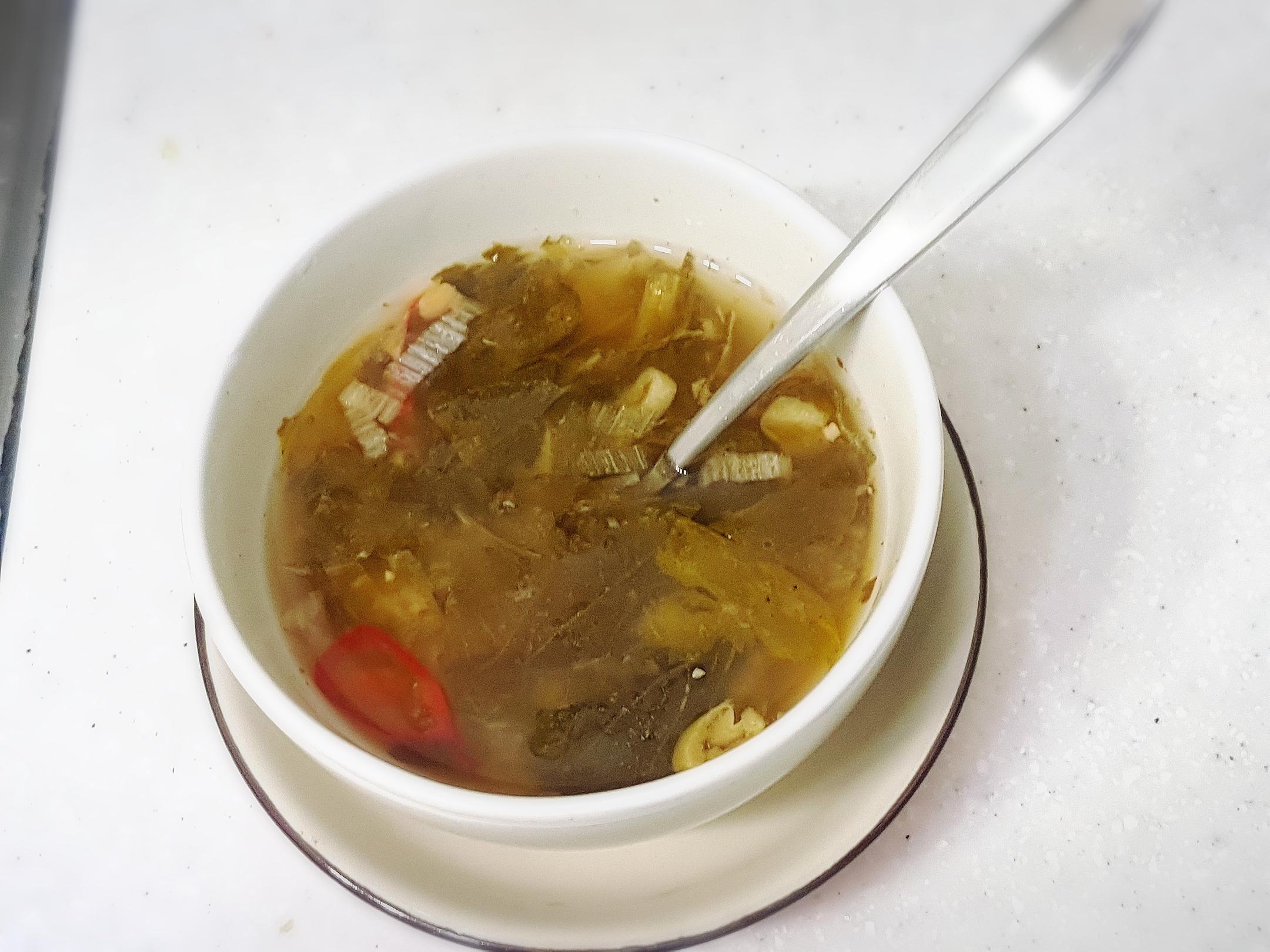 여린 시래기 넣어 끓인 순한 된장국에 살짝 칼칼한 깔끔한 맛 + 약간 고소하고 깊은 맛