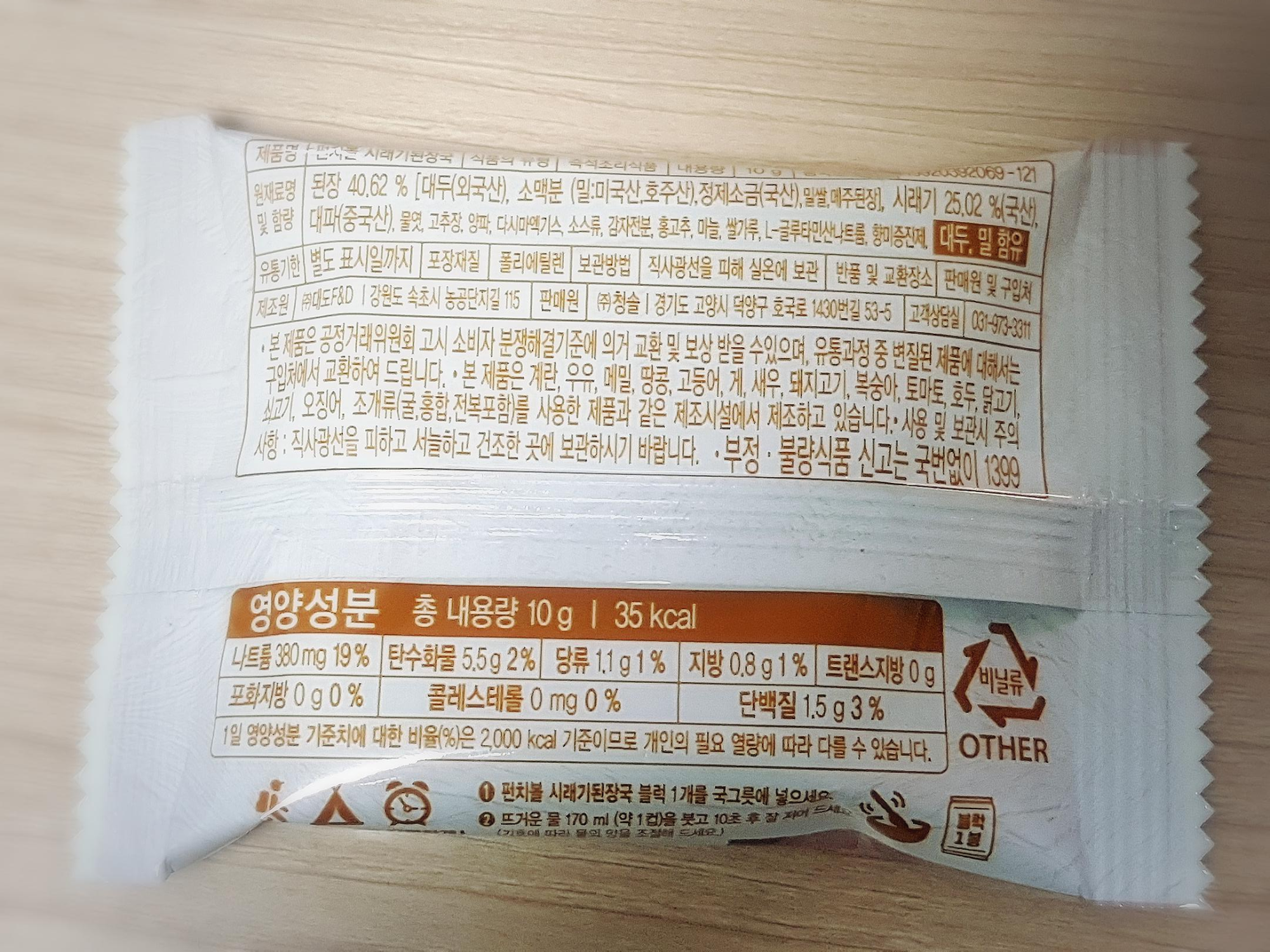 개별 봉투에도 유통기한과 영양성분표가 써 있다~