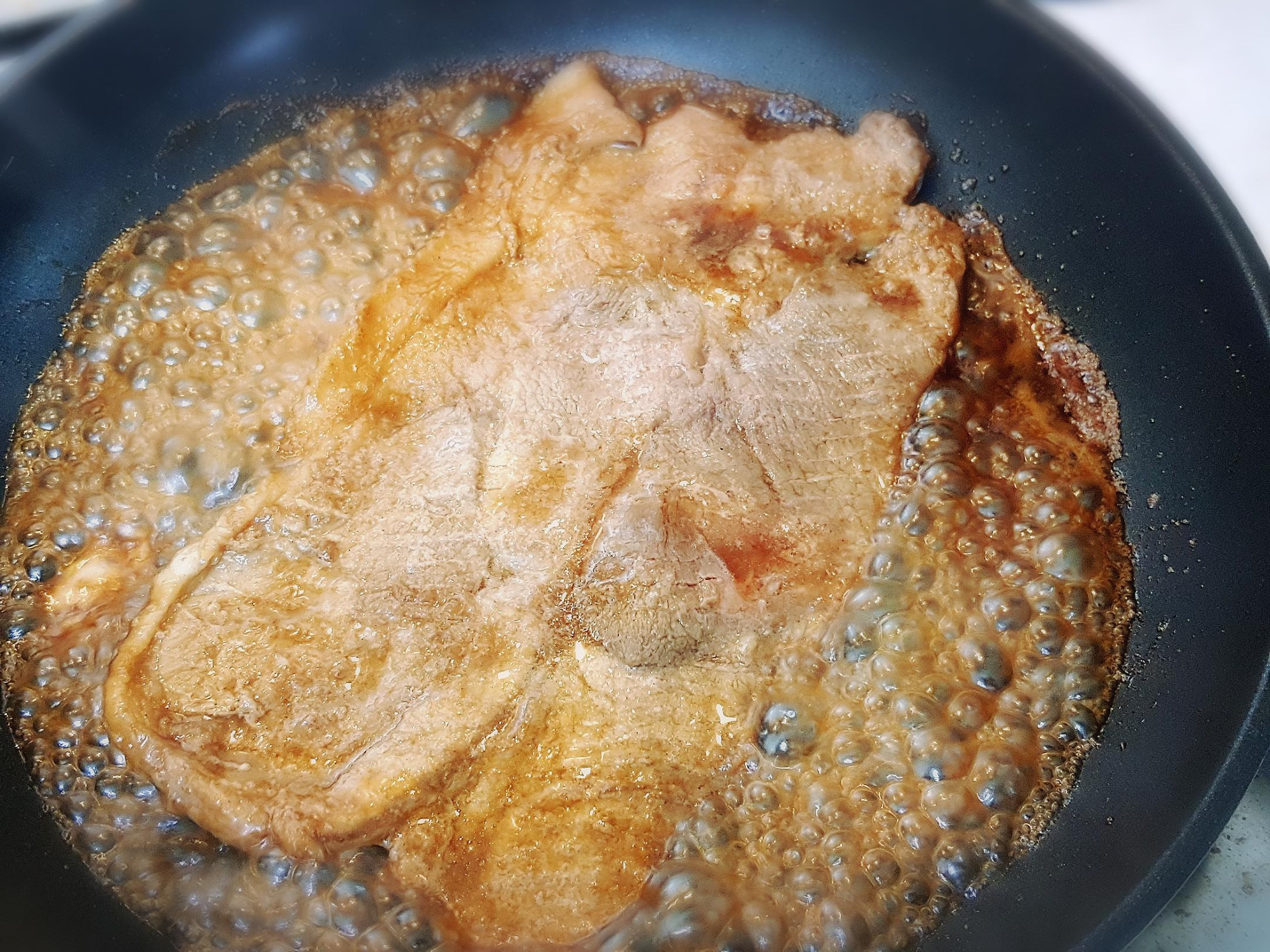 외경 29cm짜리 프라이팬 안에 저 세 점 중 한 점 구우면 꽉 찬다~