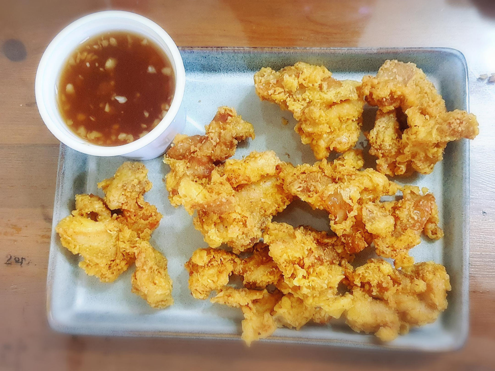 엥? 이건 그냥 후라이드 치킨이잖아? 했는데 마늘 소스가 따로 담겨져 온다. 찍먹과 부먹 선택 가능!