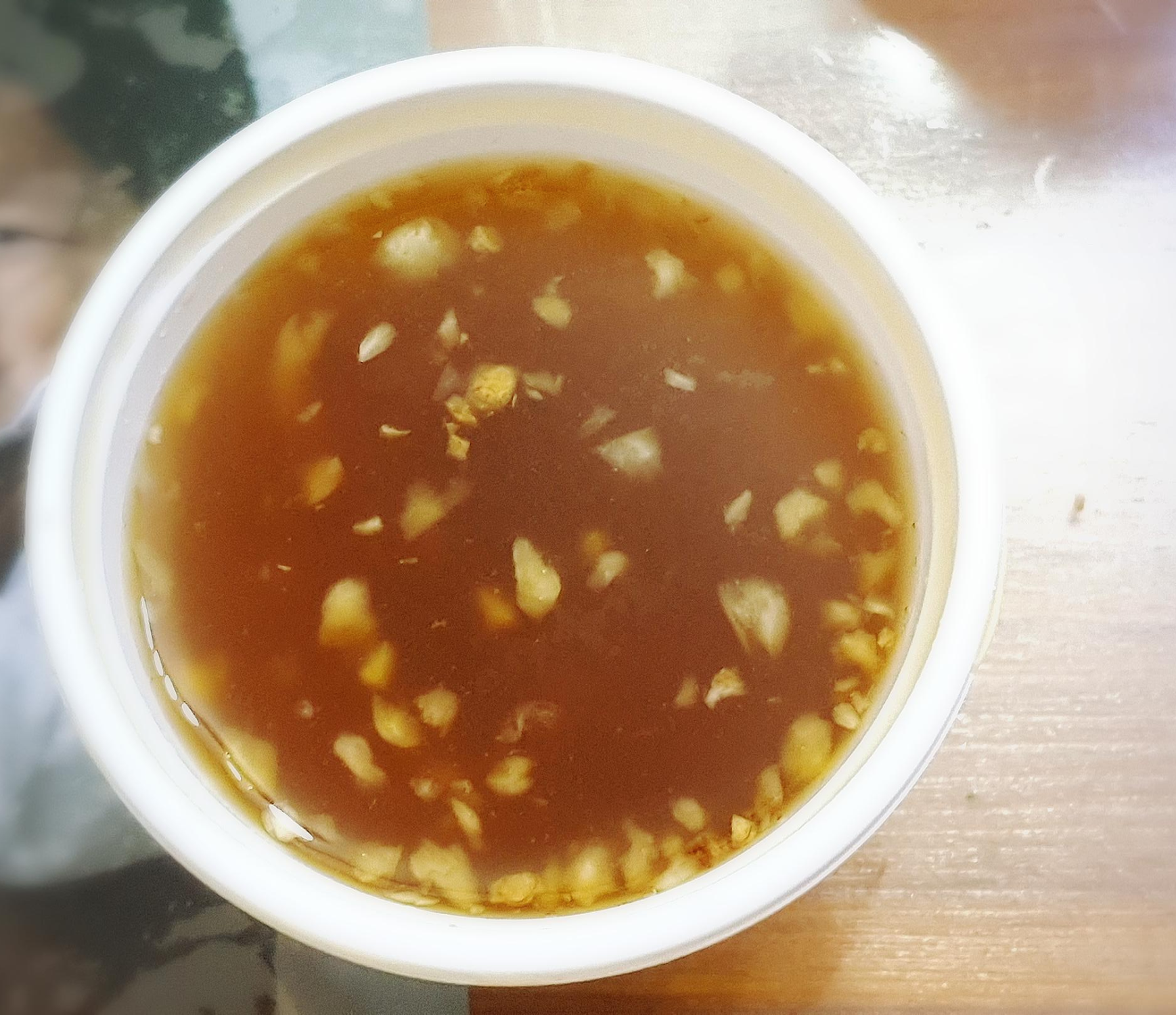 처음엔 소스를 보고 마늘이 별로 안 들어 있다고 생각했는데, 가라앉아 있는 마늘이 꽤 많이 있었다.