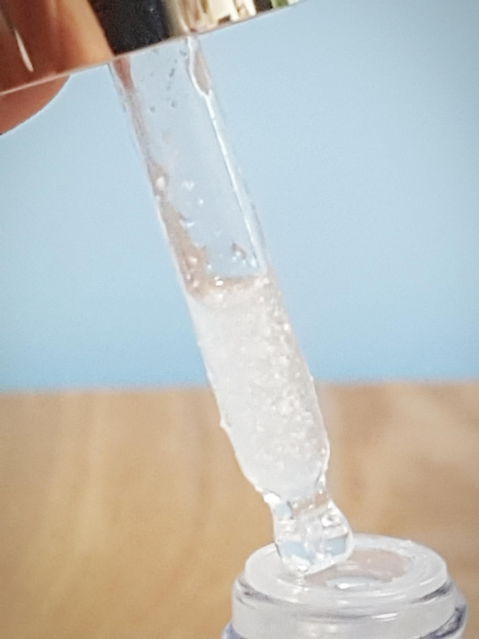 손등에 한방울 떨어뜨리고 기울이면 살짝 점성을 보이면서도 주르륵 흘러내리는 묽은 제형..