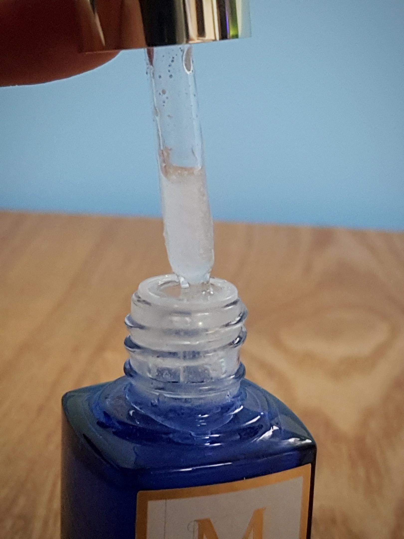 지금 보니 한 가지 색이 아니라 안에 미백색 덩어리(?)가 있는 현탁액(?) 제형이다.