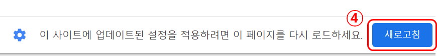 ④ 파일 다운로드 페이지의 주소창 아래에 나타나는 메시지의 '새로고침' 버튼을 클릭한 후
