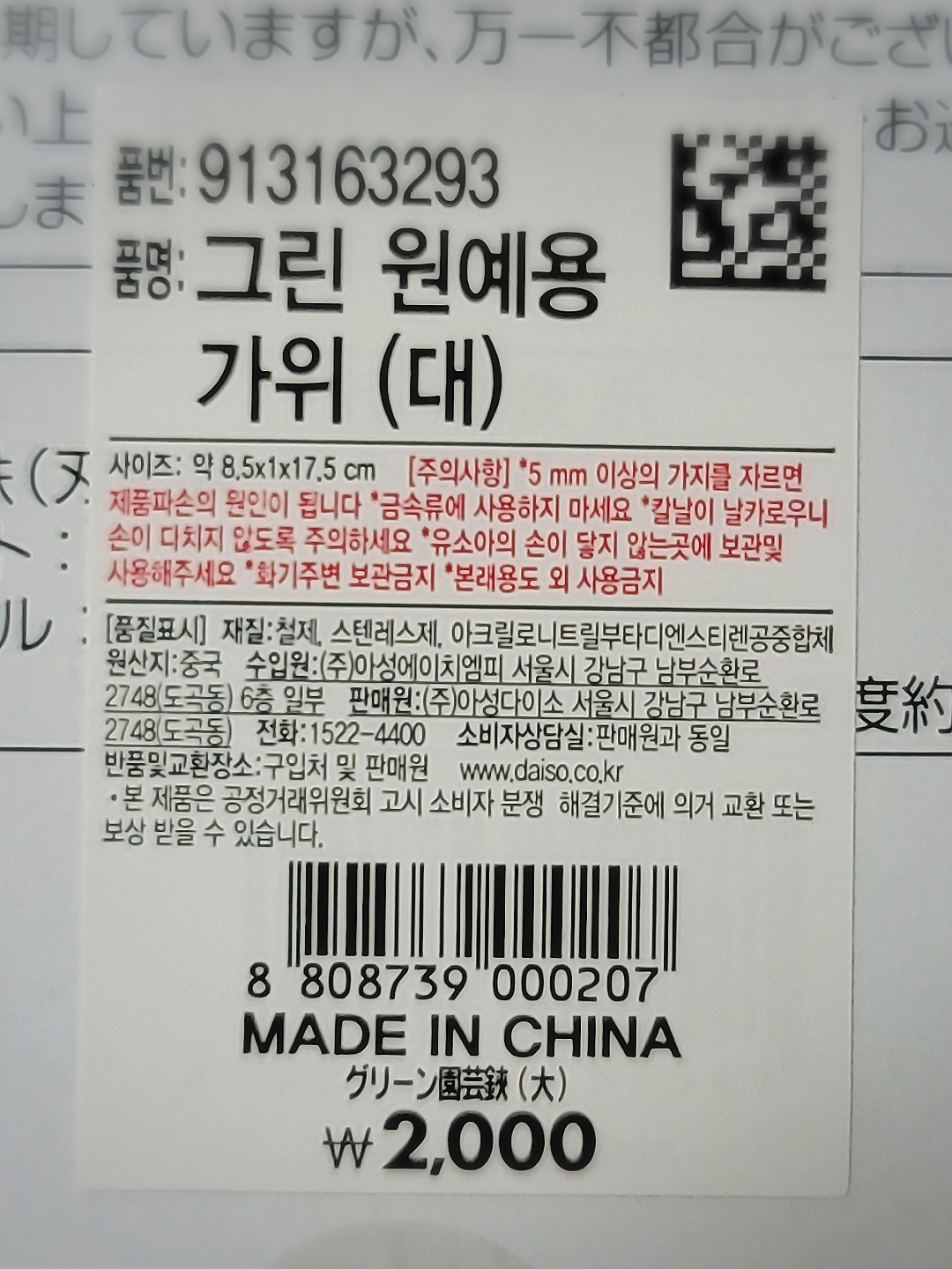 새 원예용 가위를 구매하러 다이소로 고고~