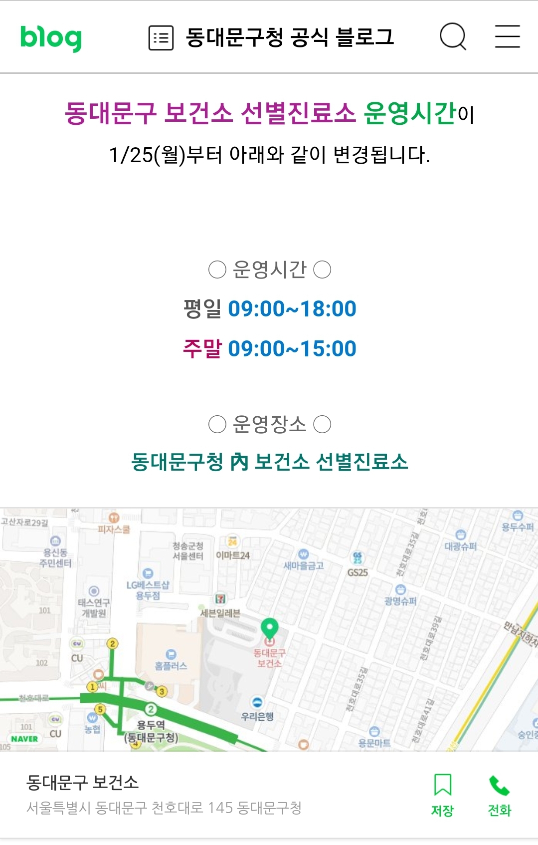 아침 9시에 부랴부랴 동대문구 선별진료소 검색