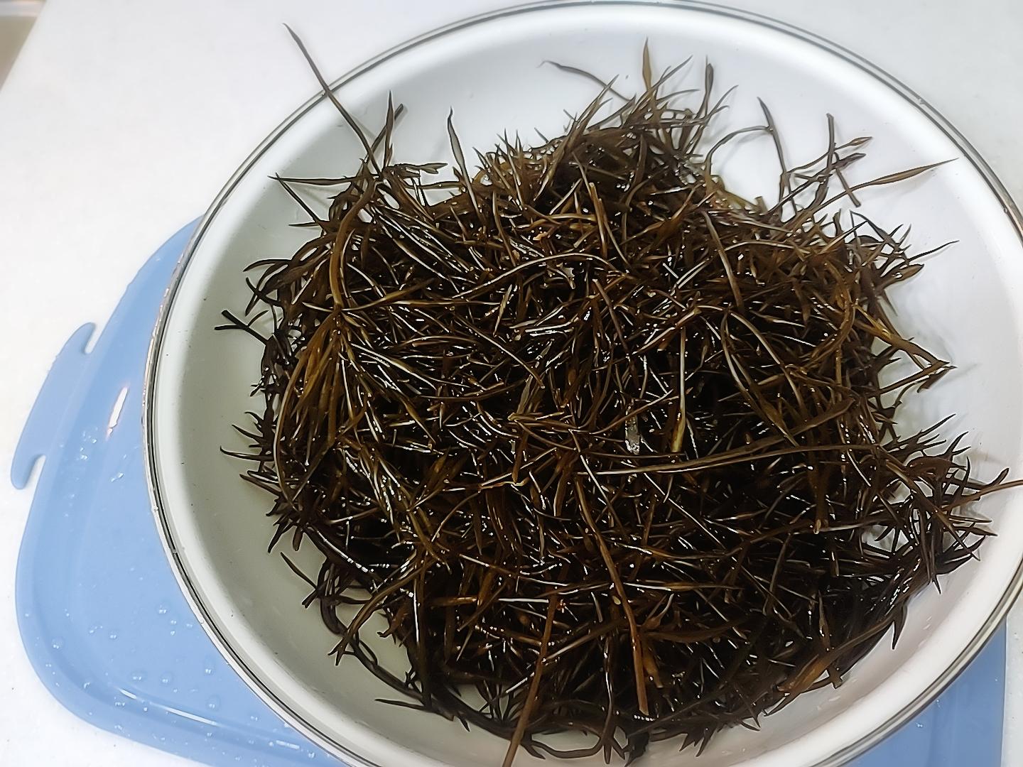 1. 흐르는 찬물에 깨끗이 씻은 톳을 건져 물을 빼둔다.