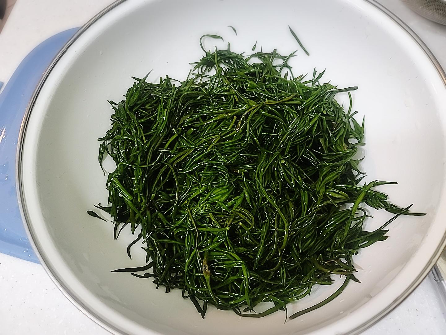 2. 씻은 톳을 팔팔 끓는 물에 10초 정도 데치고 바로 건져 찬물에 헹궈 건져둔다.