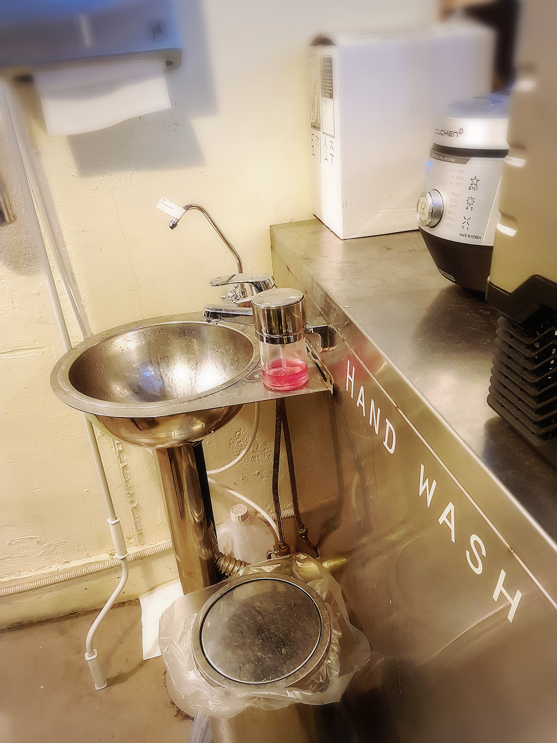 사장님의 센스!로.. 입구에 딱 수전과 물티슈가 준비되어 있다.